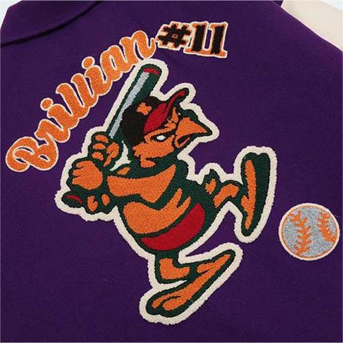 As for pattern design, we use different methods for denim jackets, bomber jackets, and aviator jackets. Typical approaches include all-over-print patterns by DTG, simple patterns by screen printing, and embroidery patches for logos and numbers.